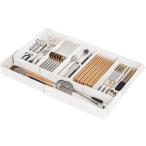 カトラリーケース 引き出し 仕切り キッチン収納 キッチンストッカー カトラリーセット 収納ケース 小物収納 (ホワイト「3面伸縮式」)