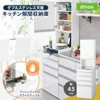 [幅45奥行55高さ170cm]ダブルステンレス天板隙間収納庫 日本製 光沢仕上げ キッチン収納 キッチンストッカー 隙間収納 630327