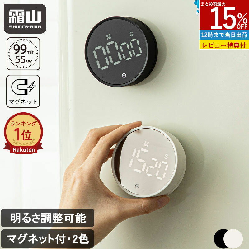 キッチンタイマー マグネット おしゃれ 電池不要 電源つき シンプル アラーム ストップウォッチ LED クッキングタイマー カウントダウン カウントアップ
