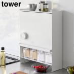 前が開くキッチンカウンター上収納ラック タワー D24 山崎実業 tower ホワイト ブラック 1454 1455 キッチンカウンター 収納 奥行き17.7cm