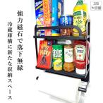 冷蔵庫サイドラック 棚 キッチンラック キッチン収納 吸盤 ラップホルダー キッチンペーパーホルダー 横収納 ワイド収納バスケット 小物入れ