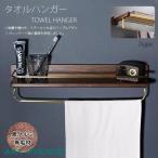 スチール棚付き 天然木製 タオルハンガー タオルホルダー トイレット ナチュラル バスルーム キッチン トイレ 耐久性 黒クルミ材 小物置き 真鍮棒 防水 耐荷重