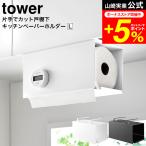 山崎実業 公式 タワー 片手でカット戸棚下キッチンペーパーホルダー カバー付き L tower 大判タイプ ストッパー 吊り下げ 3008 3009