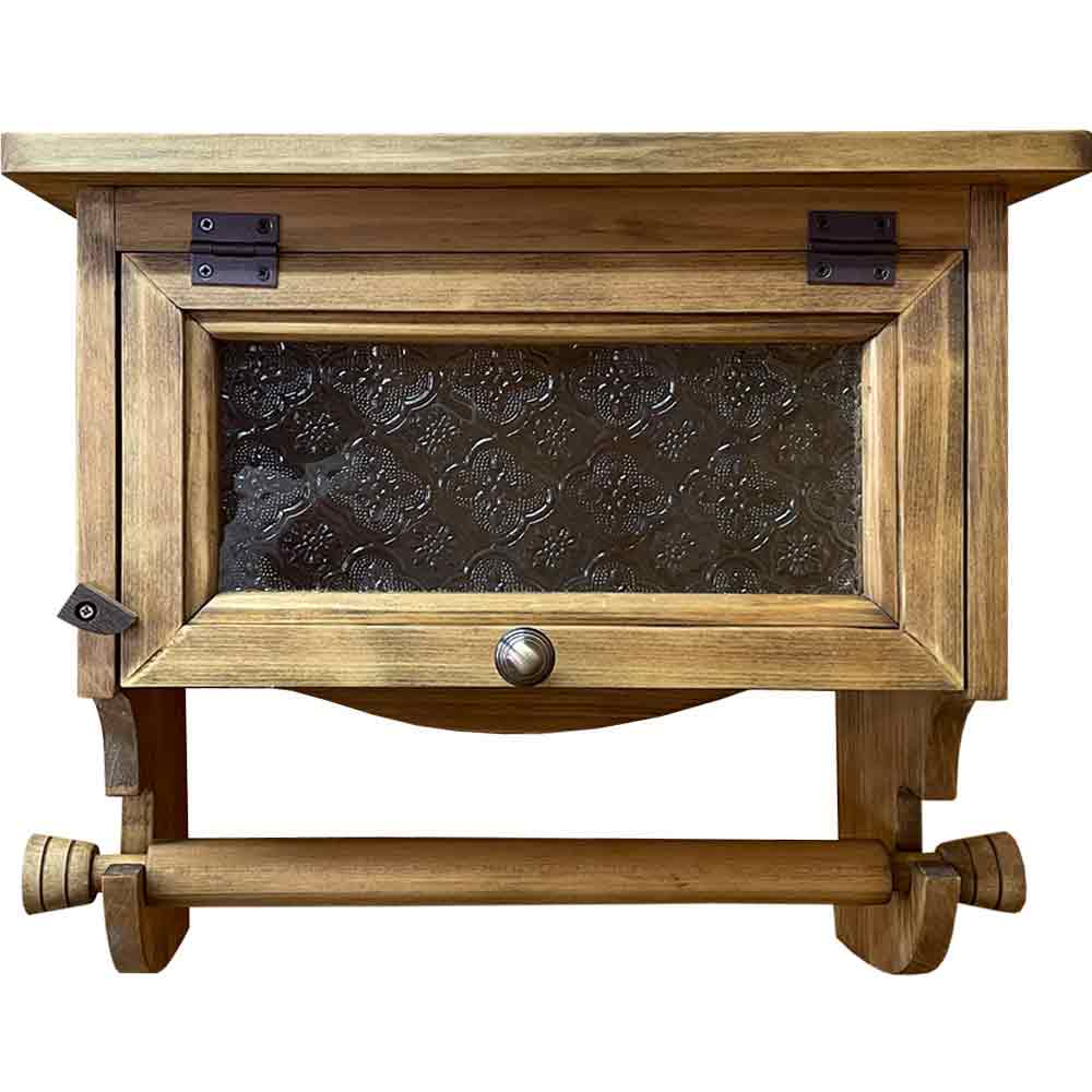 【期間限定10%OFF】キッチンペーパーホルダー フローラガラス扉 w36d22h35cm アンティークブラウン 海外サイズ280cm 壁かけスパイスラック 木製 ひのき ハンドメイド オーダーメイド
