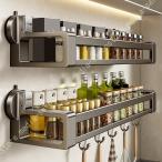 キッチンラック 吸盤式 2段 収納ラック キッチン収納 キッチン収納ラック 調味料ラック 調味料 フック5個付 キッチン 壁掛け式 穴開け不要 傷つけない 防水