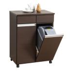 キッチンワゴン ゴミ箱収納 キャスター付きカウンターワゴン ブラウン ダストボックス2D