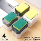 スポンジホルダー ソープディスペンサー スポンジ置き スポンジラック 洗剤ラック 食器用洗剤 キッチン ワンプッシュ 片手で出せる
