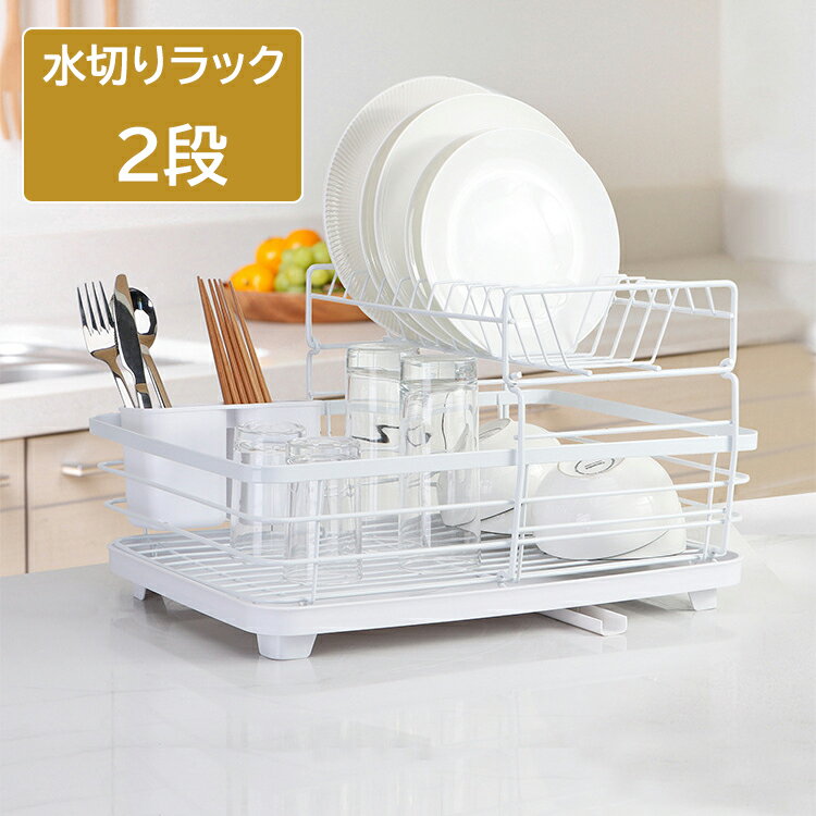 【楽天スーパーSALE10%OFF】【値下げ】水が流れるトレー付 水切りラック 2段 水切りラック ホワイト 食器置き シンクサイド 幅39 奥行29 高さ39 台所 シンク 水回り 水周り 大容量 食器 水切りかご 水切りカゴ 水切りバスケット キッチン用品 水まわり
