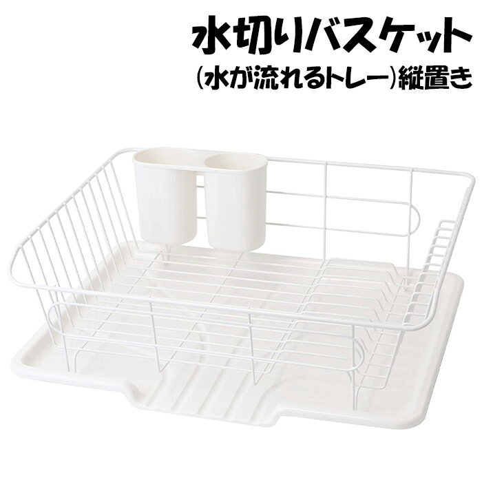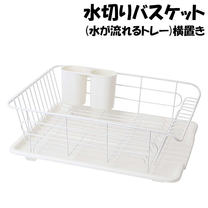 【楽天スーパーSALE10%OFF】【値下げ】水が流れるトレー付 水切りかご 1段 ホワイト 水切りラック 食器置き シンクサイド 幅34.5 奥行30 高さ15 台所 シンク 水回り 水周り 大容量 食器 水切りかご 水切りバスケット キッチン用品 水まわり