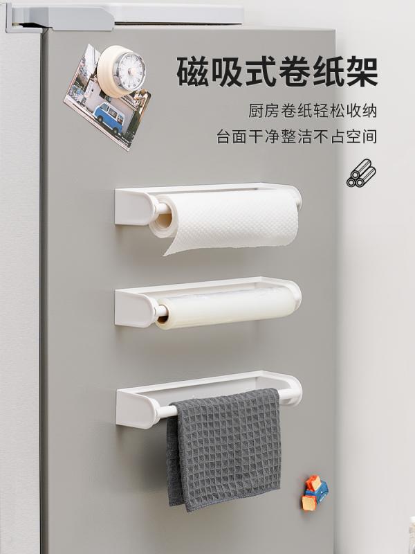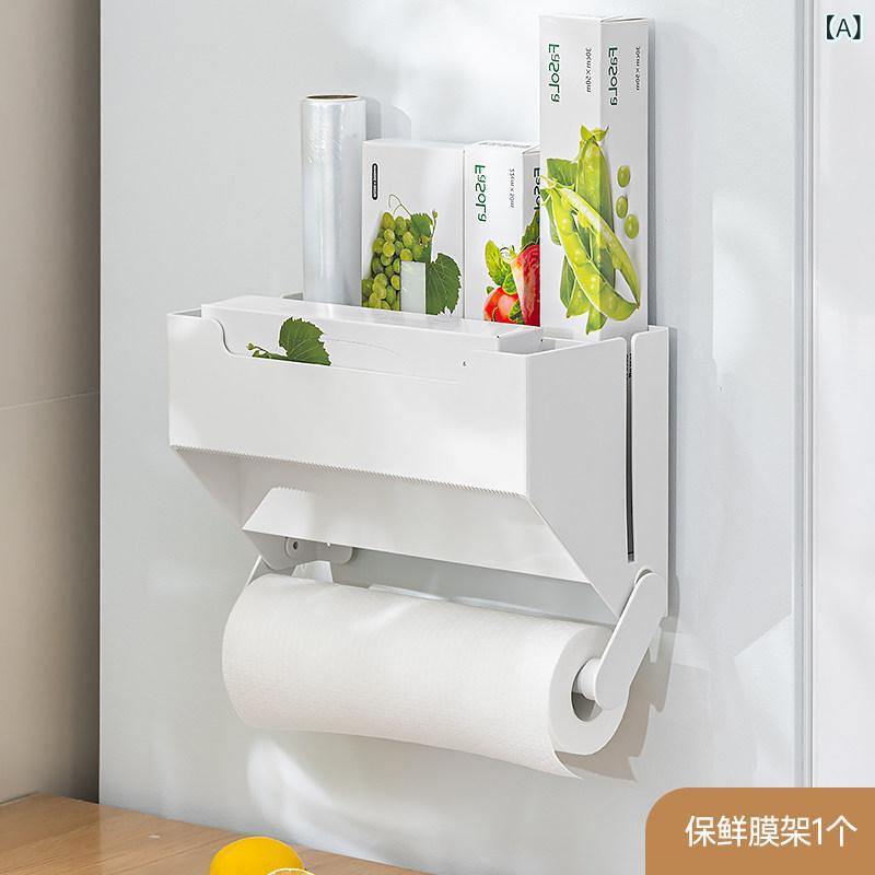 キッチン 収納 ラック ペーパータオル ホルダー ロールペーパー 掛け 穴あき不要 粘着 取り付け 冷蔵庫 置物 ラップフィルム 収納 ボックス コンパクト キッチン周り 整理 グッズ