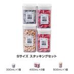 4個セット 密閉容器 食品保存容器 積み重ね スタッキング 300ml 400ml 500ml ワンタッチ プラスチック キャニスター 調味料 収納 角型 透明 ADL-S-4Pset