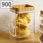 保存容器 900ml 重なるキャニスター バンブー スクエア ( キャニスター 密閉 プラスチック 0.9L 竹 保存 容器 ケース スタッキング 積み重ね )