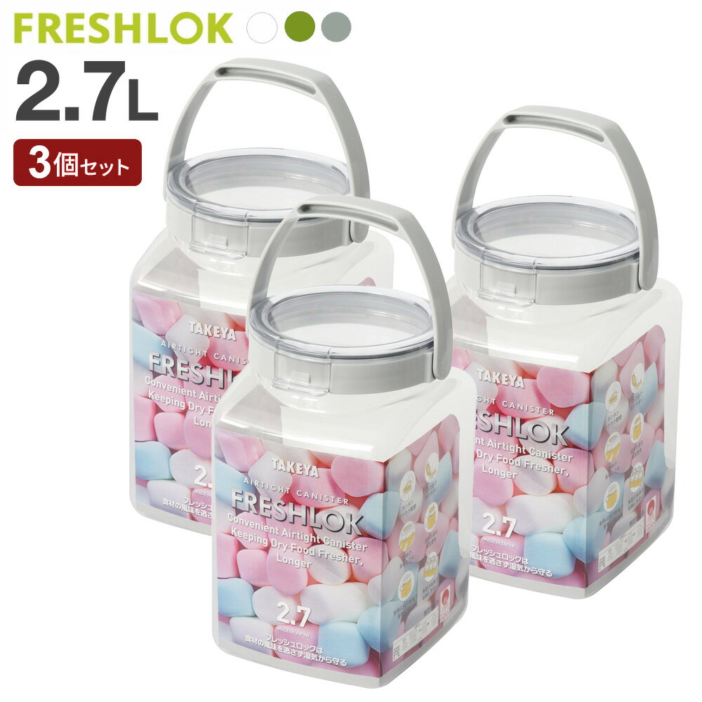 フレッシュロック 角型 2.7L 3個セット 白/緑/グレー | 保存容器 密閉 プラスチック おしゃれ 軽い キャニスター 便利 キッチン 収納 ワンタッチ 保管 タケヤ