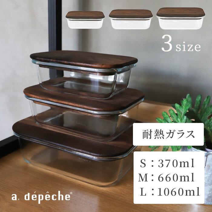 【スーパーSALE10%OFF】【公式】アデペシュ ヌーン スクエアボックス キャニスター ガラス 木製 おしゃれ 保存 容器 蓋つき 四角 耐熱ガラス 食洗器可 電子レンジ可 370 660 1060ml noon