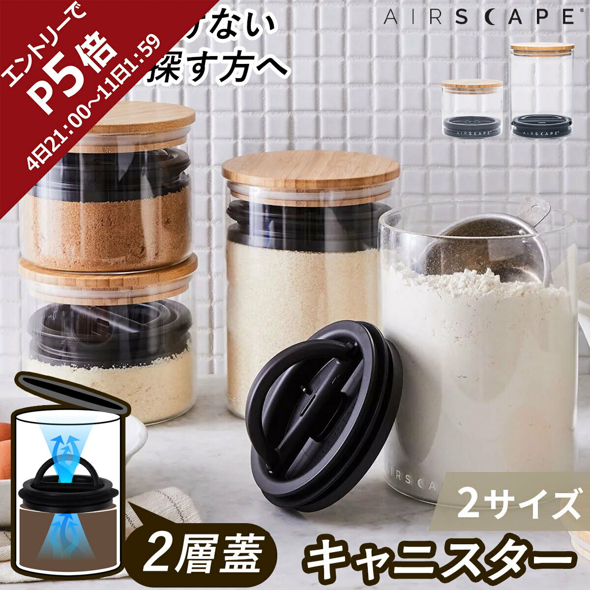 ★15%OFFクーポン 12/4〜12/11★保存容器 ガラス 密閉 キャニスター コーヒー 粉 保存 容器 密閉保存 コーヒーキャニスター ガラス 密封容器 茶葉 コーヒー豆 正規品 食品保存 ケース お米保存 クリア 透明 2層構造蓋 密閉容器 エアスケープ 【1204OT】