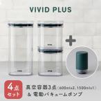 VIVID PLUS 真空容器3点&電動バキュームポンプセット 600ml×2個 1500ml キャニスター 自動真空 食材保存容器 真空保存