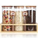 キャニスター ガラス 保存容器 密閉 木蓋 食品ストッカー キッチン収納 珈琲豆/グラノーラ/オー