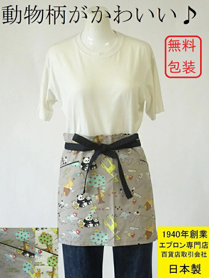 日本製 百貨店 販売 綿100% 動物柄 かわいい ギャルソンエプロン ( カフェ エプロン ソムリエエプロン ギャルソン 前掛け おしゃれ 母の日 敬老の日 制服 贈り物 サロンエプロン 前結び ユニフォーム プレゼント ギフト 誕生日 綿 キャンバス カフェ )