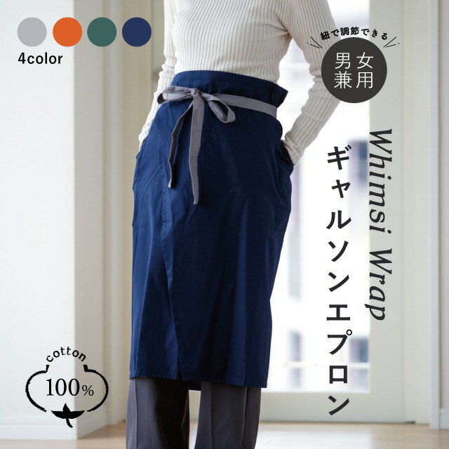 ギャルソンエプロン Whimsi Wrap ウィムジーラップ グレー オレンジ カーキ ネイビー ウォッシュドコットン ワークエプロン スリット 男女兼用