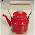 天然木とホーローの組合せが温かみを感じさせるケトルです ホーロードリップストレートケットル 1.5L ケトル やかん ほうろう 琺瑯 レッド ホワイト 赤
