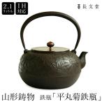 日本製 山形鋳物 長文堂 鋳物師 長谷川 長文 平丸菊鉄瓶 2.1L IH対応 直火対応 山形 高岡銅器 高岡鉄瓶 南部鉄器 南部鉄瓶 IRON やかん ケトル プレゼント