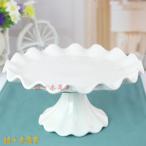 陶器 ケーキスタンド 1段 白 ホワイト 花リム アンティーク ケーキトレー ケーキプレート ケーキ台 かわいい 北欧 おしゃれ 高級感 インテリア