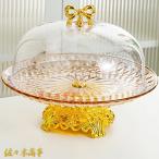 ケーキスタンド ケーキプレート 木製ケーキガラスドーム コンポート 蓋付き 透明フルーツプレート デザートスタンド お菓子皿 ガラスカバー
