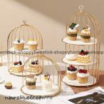 ケーキスタンド 鳥ケージ型 セラミック 金属 カップケーキスタンド 2段3段 フルーツプレート デザート展示台 多層 お菓子 おしゃれ