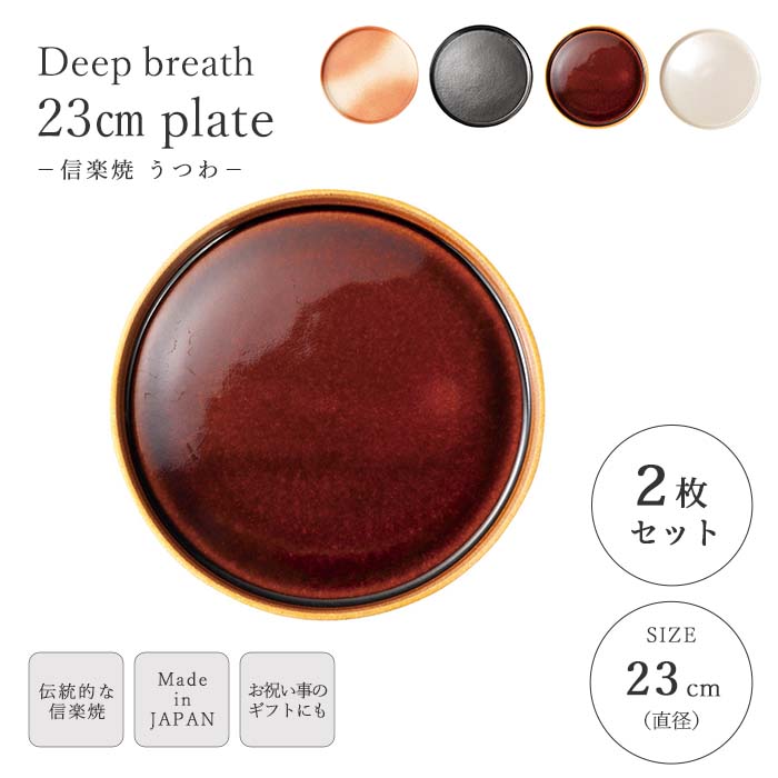 【ポイント10倍】《ヤマ庄陶器》Deepbreath 23cm切立プレート 2枚セット 和食器 ワンプレート プレート 皿 うつわ 器 食器 ケーキ皿 パスタ皿 ギフト プレゼント 贈り物 手造り 陶器 信楽焼 日本製 キャラメル ホワイト ブラック スカーレット db-9-2set