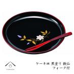 ケーキ皿 黒 鉄仙 フォーク付 日本製 国産 名入れ ギフト プレゼント 母の日 父の日 お皿 トレイ tray トレー 紀州漆器