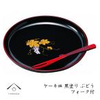 ケーキ皿 黒 ぶどう フォーク付 日本製 国産 ギフト プレゼント 母の日 父の日 お皿 トレイ tray トレー 赤 紀州漆器