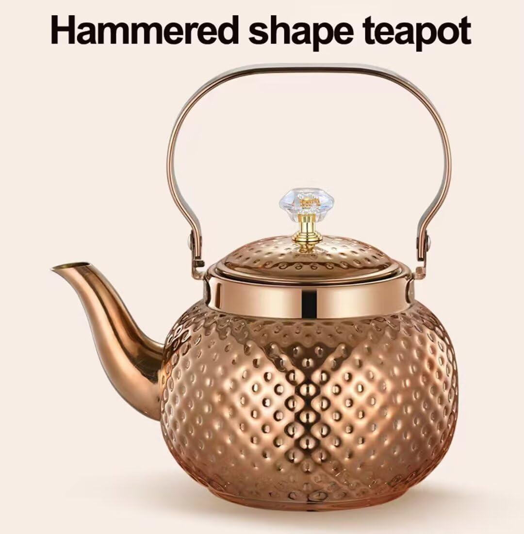 「10%OFFクーポン配布中」ティーセパレーター付きの槌目形状の小さなティーケトル、醸造ルーズティーティーポット、ダイヤモンドPPトップビーズ付きのポータブルケトル、ステンレススチール製コンロケトル、1.6L