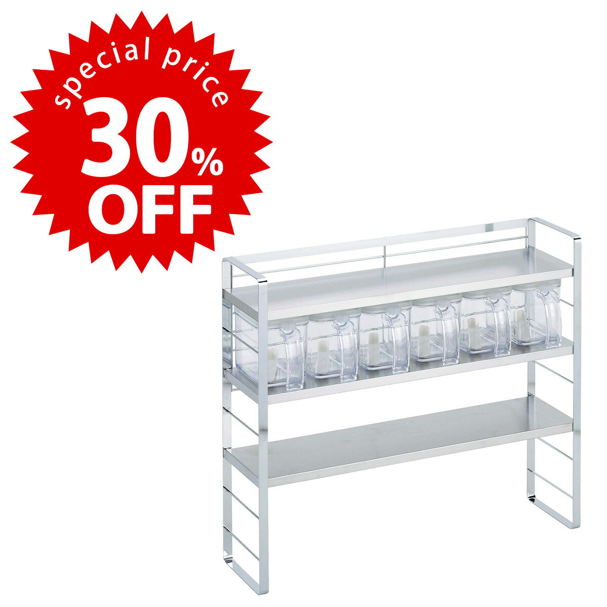 【楽天スーパーSALE10%OFF】スパイスラック ステンレス 調味料ラック シルバー スパイスストッカー 2段 ワイド 調味料ポット5個付き ステンレス製 日本製 キッチンラック 奥行12cm 省スペース キッチン上ラック スパイス収納 調味料 スパイス おしゃれ 新