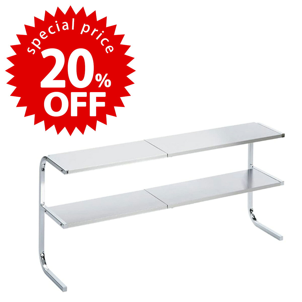 【スーパーセール 期間限定 20%OFF 】 どこでも サポートシェルフ 2段日本製 整理 収納 コンロ奥 ラック一時置き 鍋置き 調味料置き 棚ステンレス 日本製 国産 下村企販燕三条 サポート台 シンク上スペース活用