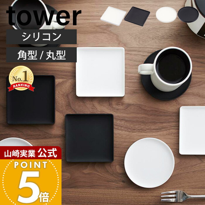 tower 山崎実業 立体コースター 丸型 タワー キッチン 公式 4個セット ホワイト/ブラック 2538 2539 / 送料無料 シリコン マグカップ キッチン雑貨