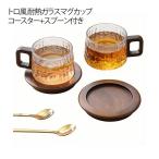 レトロ風 耐熱ガラスマグカップ&コースター&スプーン モダン 天然木 ハンドル付き おしゃれ ティーカップ 麦茶マグコップ コーヒー グラス コップ