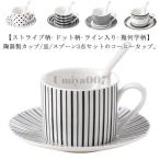 2セット コーヒーカップ ティーカップ 200ml 珈琲カップ ソーサー付き 陶器 水玉柄 ドット柄 コーヒーカップ マグカップ ストライプ柄 幾何学