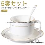 マグカップ コーヒーカップ 5客セット ゴールドライン入り 来客用 シンプル 小さめ 150ml ソーサー コンパクト セット 陶器 コーヒー スプー