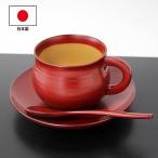木製 コーヒーカップ セット 日本製 漆塗り 古代朱 畠中作 天然木 越前漆器 カップ ソーサー 皿 スプーン 高級 和食器 おしゃれ