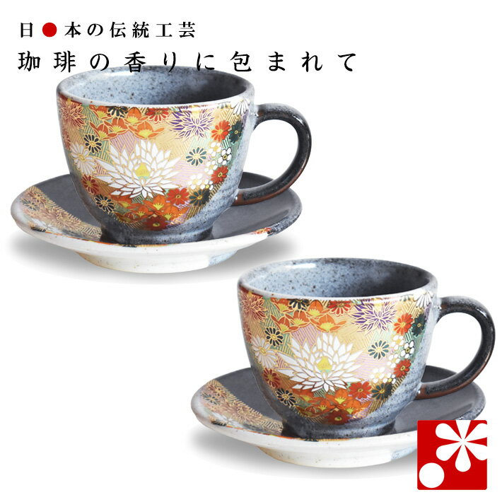 九谷焼 ペアセット コーヒーカップ&ソーサー 銀彩 マグカップ ソーサー付き 本銀箔 おしゃれ 2個 セット 結婚祝い プレゼント 贈り物 ギフト 日本製 お揃い