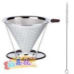 コーヒードリッパー ステンレス鋼 円錐形 フィルター蜂窩状 2層メッシュ ペーパーフィルター不要 1?4杯用ブラシ付き