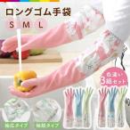 ゴム手袋 ロング 3双セット かわいい おしゃれ 作業用 ロンググローブ ロングスリーブ 丈が長い 裏起毛 食器洗い キッチン掃除 トイレ掃除 浴室掃