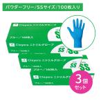 【3個セット】ニトリルグローブ ブルー パウダーフリー SSサイズ 100枚入 ゴム手袋 使い捨て 粉なし 着脱しやすい 強度 伸張性 フィット 薄手 左右兼用 衛生用品