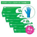 【4個セット】ニトリルグローブ ブルー パウダーフリー SSサイズ 100枚入 ゴム手袋 使い捨て 粉なし 着脱しやすい 強度 伸張性 フィット 薄手 左右兼用 衛生用品