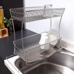 水切りかご 18-8 ステンレス製 水切りラック 2段 スリム サスティナ ( 水切りカゴ ディッシュラック 水切りバスケット 水切り 流れる オールステンレス 伸縮 )