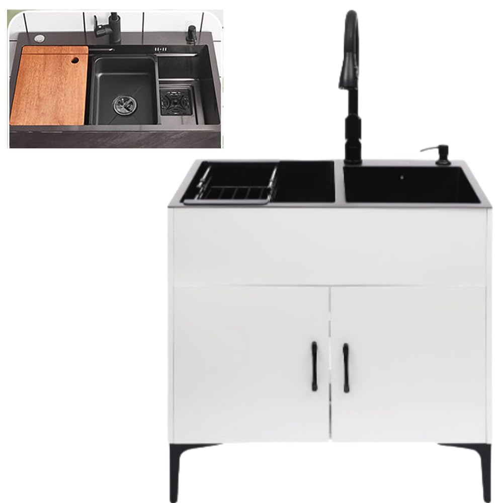 屋外シンク,黒流し台,ガーデンシンク,ステンレスキッチンシンクキャビネット付き,業務用シングルボウル流し台C&Jシステムキッチン シンクキャビネット