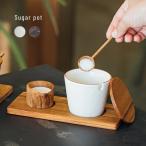 シュガーポット 陶器 おしゃれ スプーン付き 木製 チーク材 蓋付き 北欧 卓上 コーヒー かわいい 可愛い カフェ 陶器のシュガーポット 2タイプ
