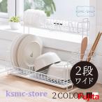 水切りラック 2段 水切りかご 大容量 ワイド 水切り 省スペース 食器 乾燥 水切りバスケット キッチン用品 箸立 排水 ディッシュラック おしゃれ