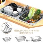 水切りバスケット ステンレス製スライド式 ステンレス キッチン キッチンラック 水切りラック 水きり 水切りカゴ ラック カゴ 食器入れ 食器 シンク