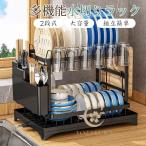 水切りラック シンク上 2段 食器水切り 食器収納 キッチン収納 水切りかご キッチンラック 皿立て 箸入れ まな板立て ディッシュラック 台所用品 大容量